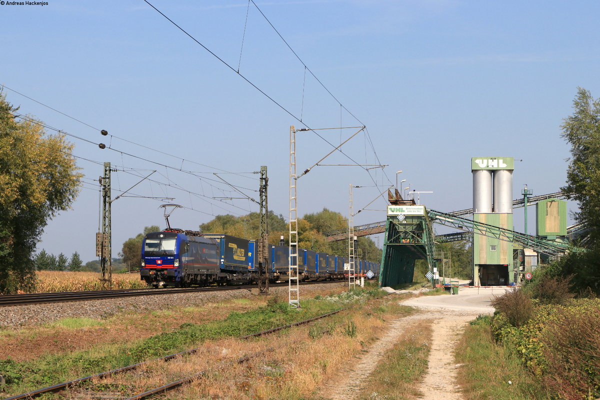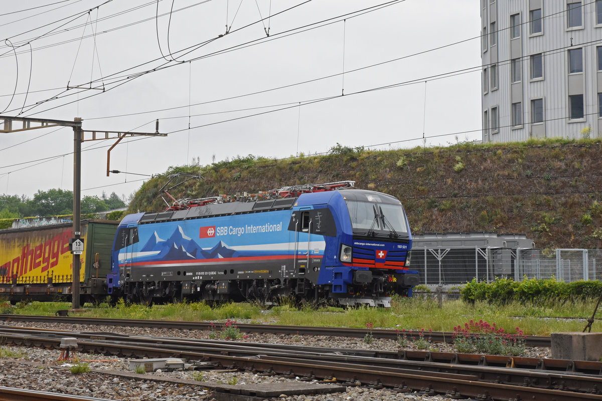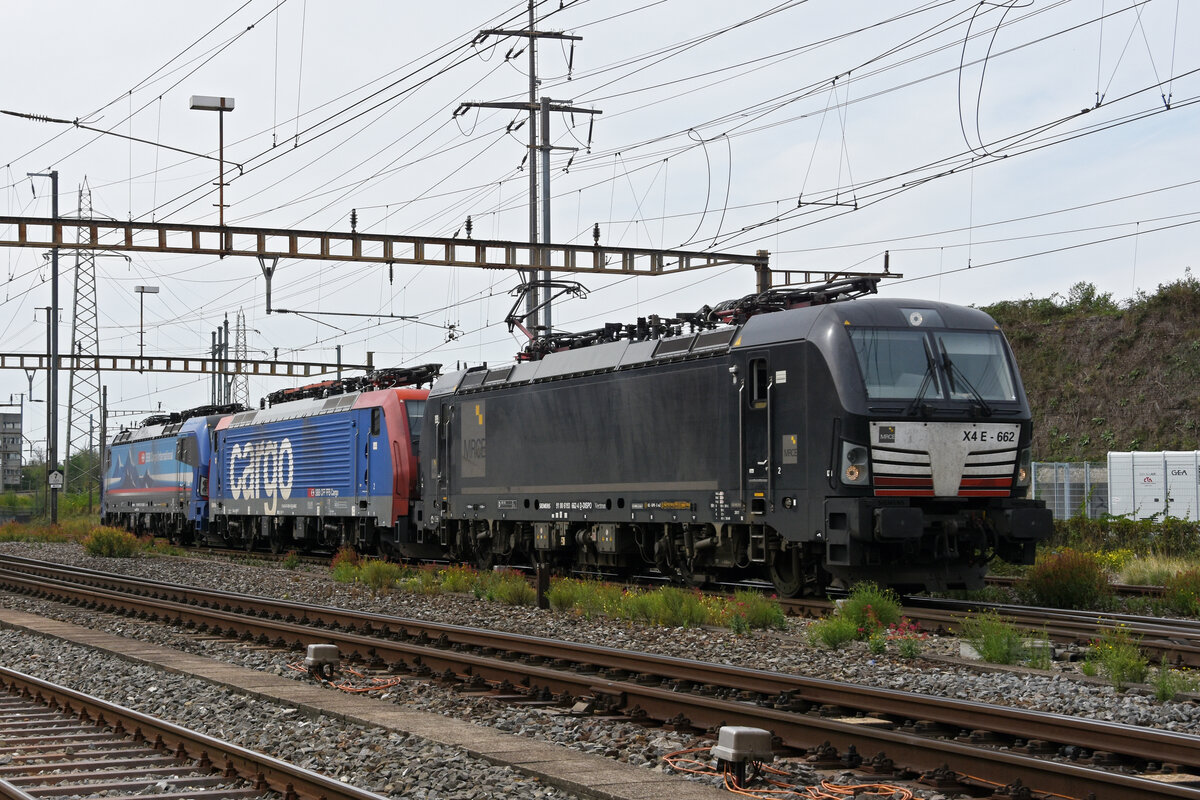 Am 13.09.2022 schleppt die Siemens Vectron 193 662-4 die Re 474 004-9 und die Siemens Vectron 193 531-1 durch den Bahnhof Pratteln.