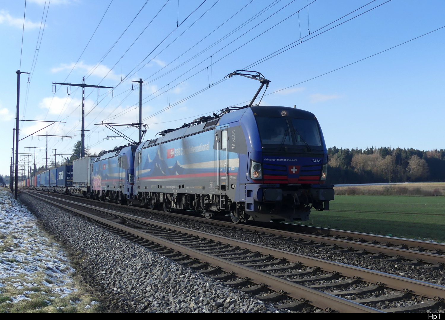 SBB - Lok 193 529-5 + 193 531-1 vor Güterzug unterwegs bei Lyssach am 2025.01.13
