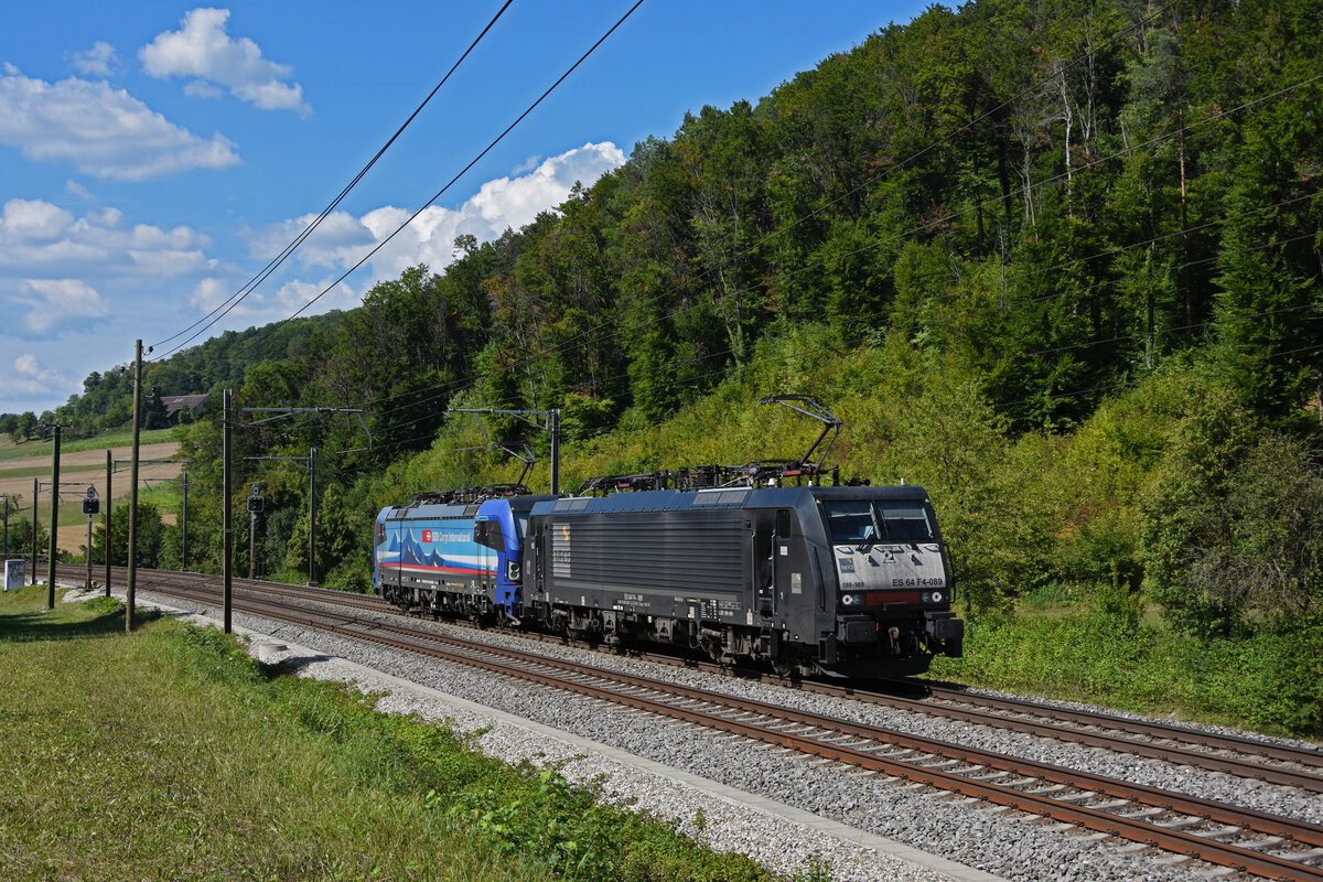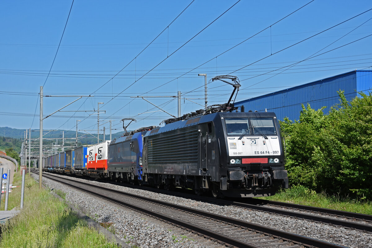 Doppeltraktion, mit den Loks 189 997-0 und 193 533-7 fährt Richtung Bahnhof Itingen. Die Aufnahme stammt vom 01.60.2021.