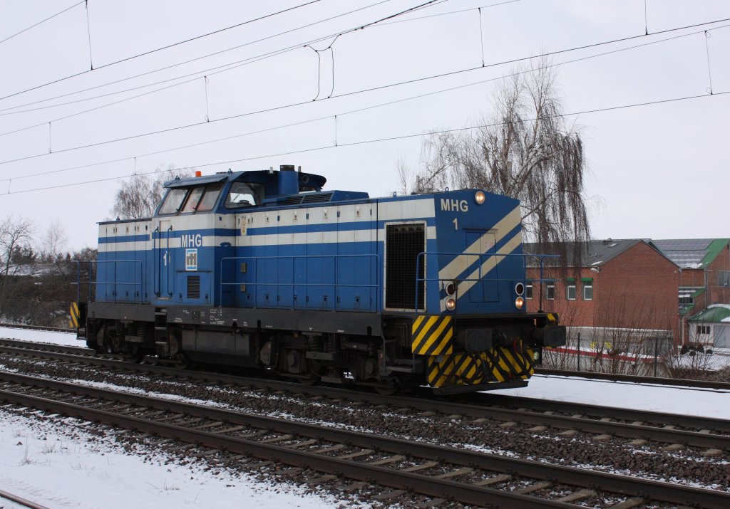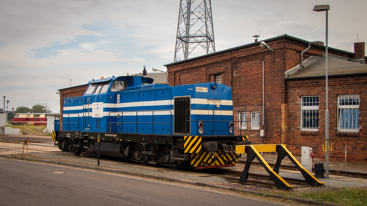 MHG-1 (201 004-9) ex DR (V 100 004) MHG - Magdeburger Hafen GmbH, kam nach Stendal um einen Baukran zu holen und fuhr dann wohl in Richtung Magdeburg weiter. 05.05.2012