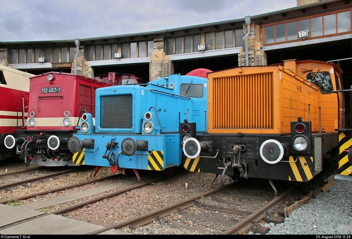 89 1004 der Traditionsgemeinschaft Bw Halle P e.V., 228 505-4 (118 005-8 | DR V 180) DB, 202 457-8 (112 457-7 | DR V 100) der Traditionsgemeinschaft Bw Halle P e.V., 312 0?? (102 0?? | DR V 23), Eigentümer unbekannt, 312 244-7 (102 244-1) der Traditionsgemeinschaft Bw Halle P e.V., 345 021-0 (105 021-0 | DR V 60) DB und 346 145-6 (106 145-6 | DR V 60) "Ruth 15" des Verein Eisenbahnmuseum Bayerischer Bahnhof zu Leipzig e.V. geben sich am Ringlokschuppen des DB Musems Halle (Saale) anlässlich des Sommerfests unter dem Motto "Diesellokomotiven der ehemaligen DR" ein Stelldichein.