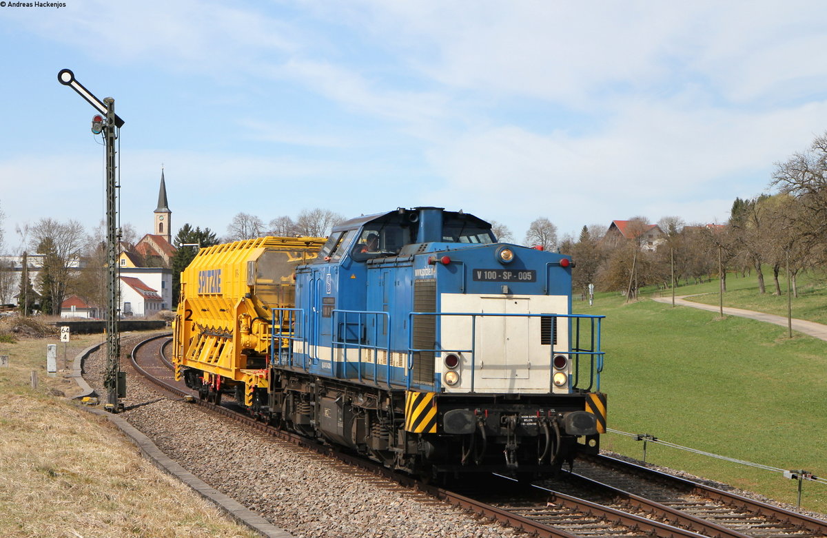 V 100-SP-005 (203 005-8) SLG - Spitzke Logistik GmbH mit einem leeren Schwellenzug, bei der Durchfahrt in Stendal und fuhr weiter in Richtung Rathenow. 28.10.2014 Stephan Kemnitz