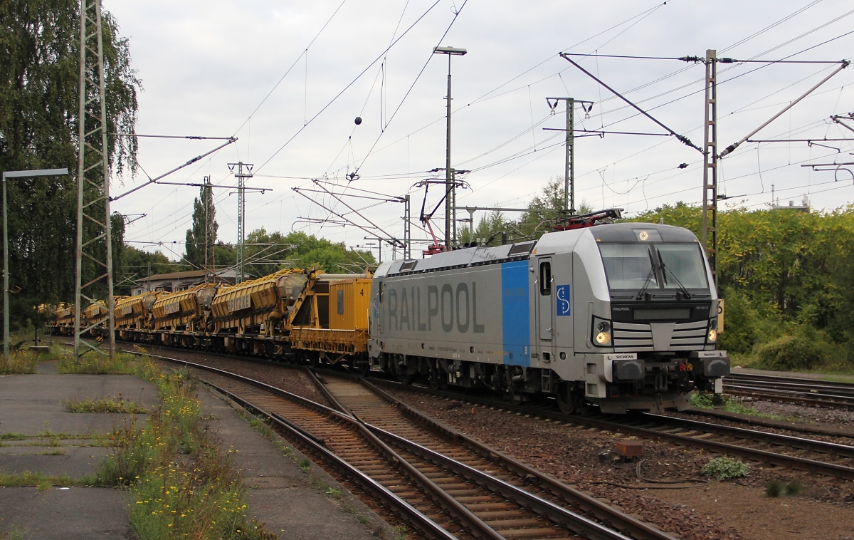 Nachschuss auf den Bauzug, der von 193 801-8 gezogen wurde. Am Zugschluss hing noch V100-SP-006 (203 006-6) Aufgenommen am 21.09.2013 in Lehrte. Jens Baumhauer