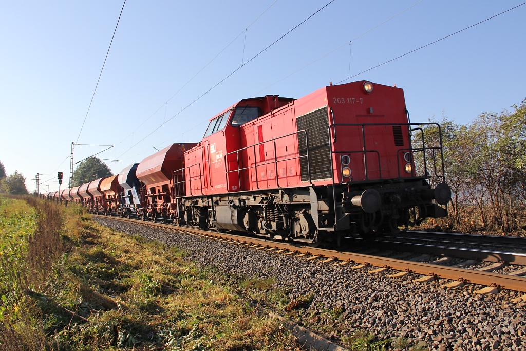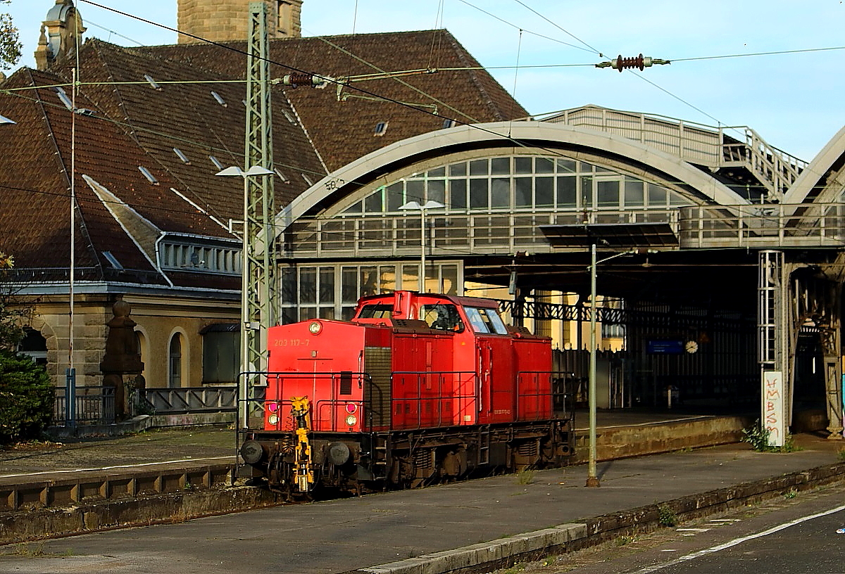 Als die 203 117-7 (ex DR 110 486-8/DB AG 202 486-7) am 31.10.2013 durch den Krefelder Hauptbahnhof brummt, gehörte sie noch zu Chemion, inzwischen ist sie an Alstom Transport Deutschland vermietet Horst Lüdicke