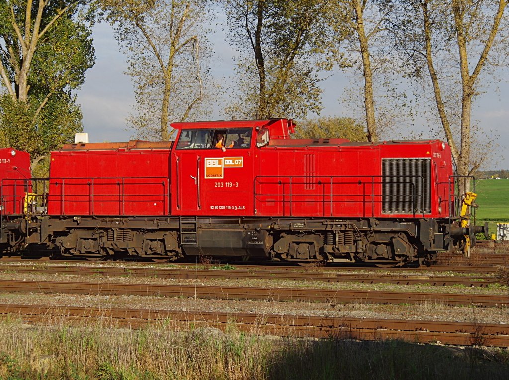 203 119-3 der BBL Logistik am 06.10.2010 in Aulendorf. Das Bild entstand mit leichtem Tele vom Parkplatz neben dem Gleis nach Sigmaringen.