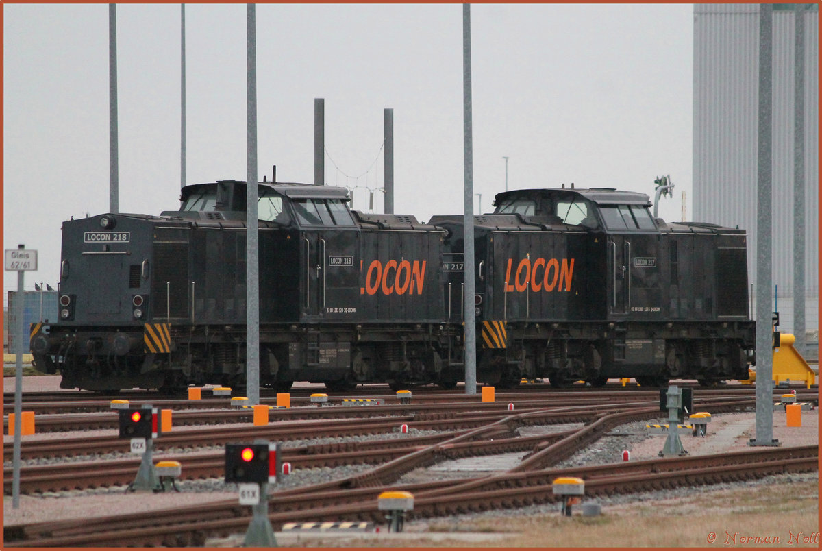 203 124-3 und 203 123-5 warten in Doppeltrakion auf ihren Containerzug am Jade-Weser-Port.   Wilhelmshaven 03/03/2017
