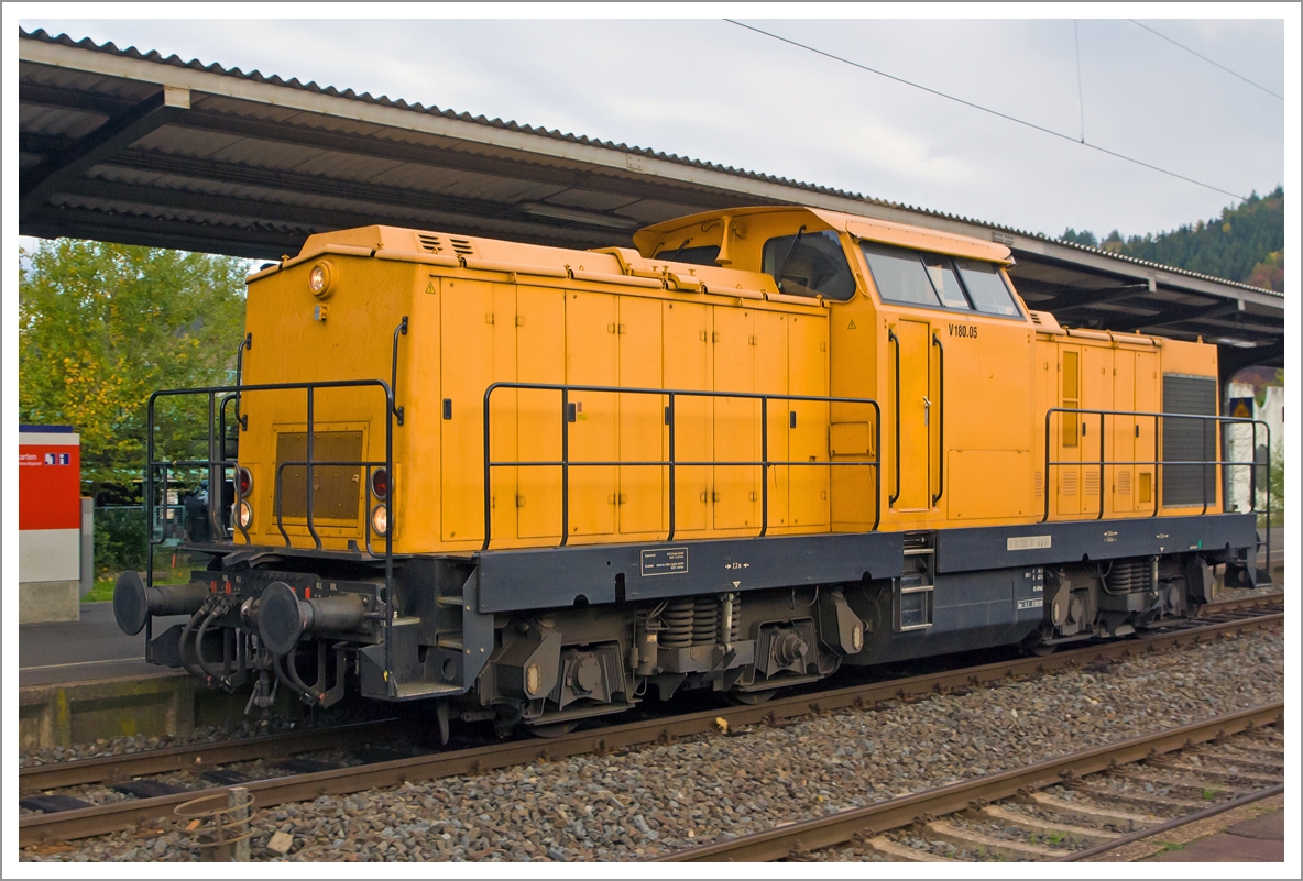 Die V 180.05 (203 161-5) der SGL-Schienen Güter Logistik GmbH, ex DR 110 619-4, ex DB 201 619-4, durchfährt am 26.10.2013 den Bahnhof Betzdorf/Sieg in Richtung Köln.