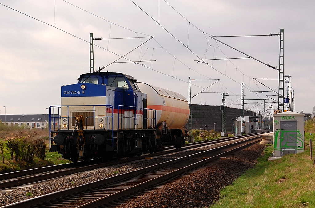 Heute Nachmittag war D-Day und das meine ich nicht auf das Datum bezogen....es dieselte nur so auf der KBS 495 bei Allerheiligen.....die Chemion 203 764-6 kam mit zwei Tankwagen aus Richtung Neuss gefahren....an diesem 20.4.2012