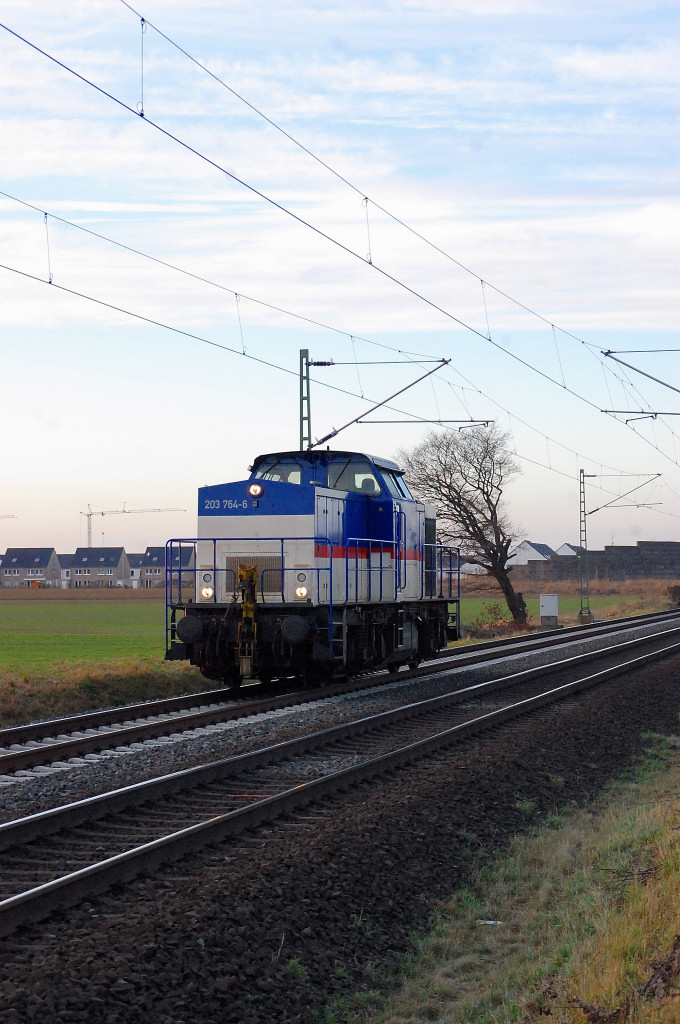 Bei immer schwächer werdendem Licht kommt als letztes Motiv die 203 764-6 bei Allerheiligen daher....Freitag 27.Januar 2012.