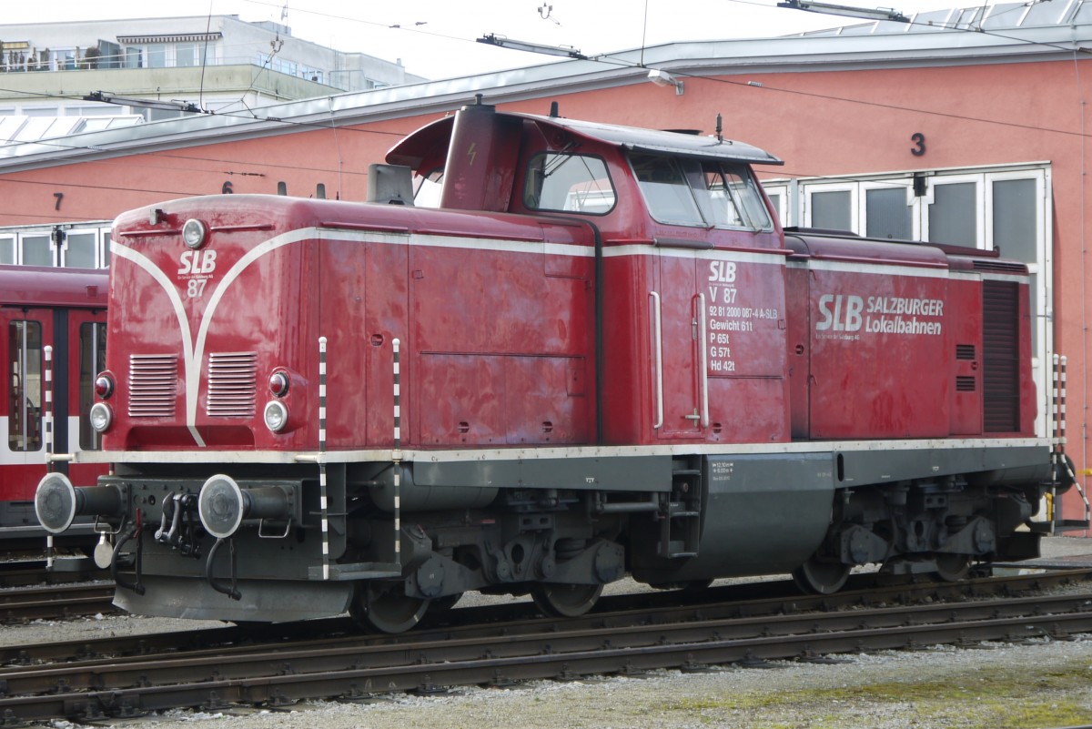 V 87 der Salzburger Lokalbahn (offiziell 92 80 2000 087-4 A-SLB), die ehemalige 211 119-3 in Salzburg-Itzling, 2.1.13.