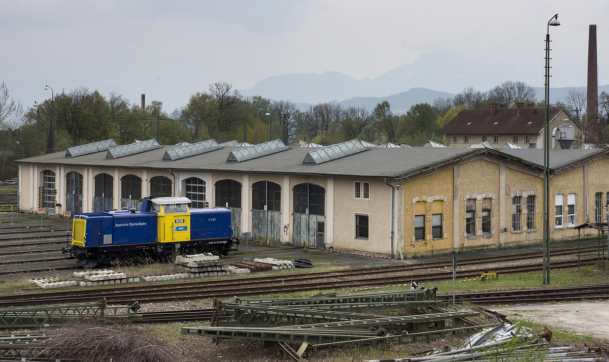 211 273-8 der BOB (V 125) steht am 05.04.2014 vor dem Lokschuppen des Bw Freilassing. Die aktuelle Betreibernr. aus ihrer Zeit bei der Rinteln-Stadthagener Eisenbahn