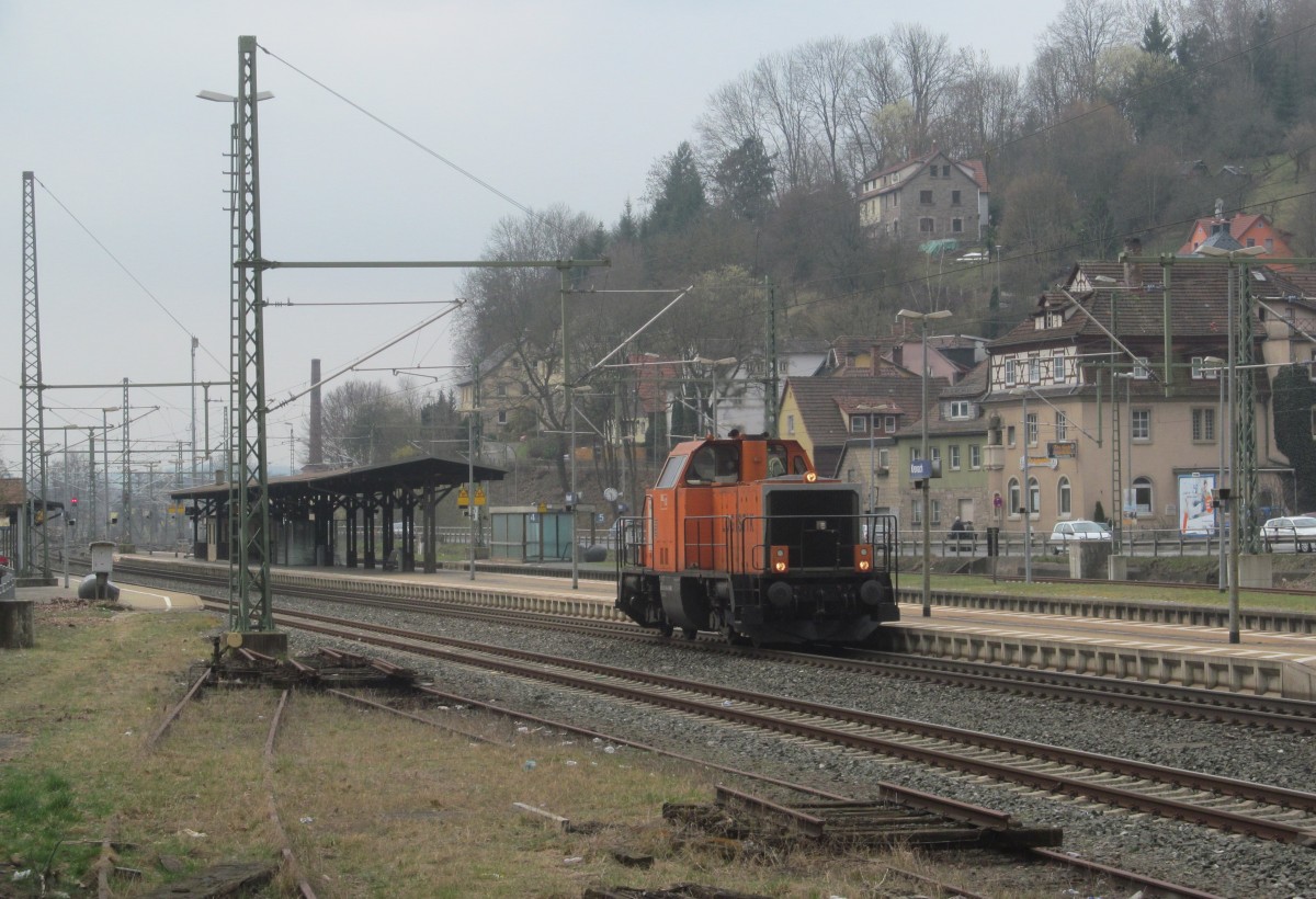 214 024-2 der BBL Logistik durchfährt am 17. März 2014 solo den Bahnhof Kronach in Richtung Saalfeld.