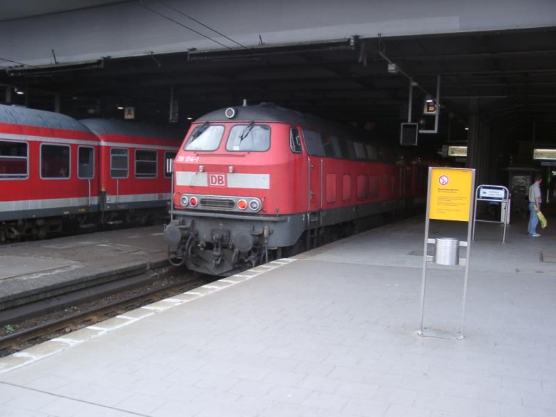 218 174-1 diesmal in der Bahnhofshalle Hamburg.