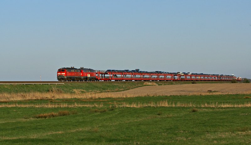 218 190-7 und 218 162-6 am 17.04.2009 mit einem Autozug nach Westerland bei Keitum.
