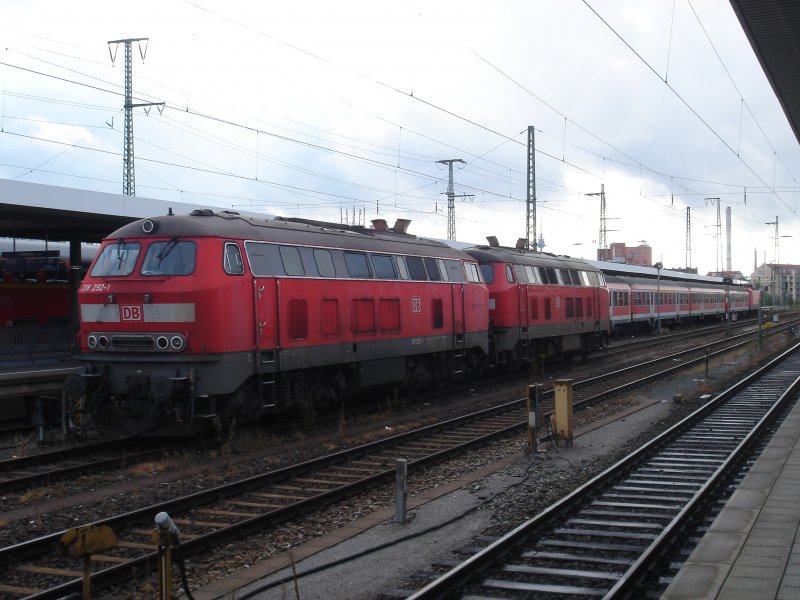 Die Br.218 292-1 und eine weitere 218er beim Ragieren in Nürnberg HBF. Aufgenommen am 25.08.06