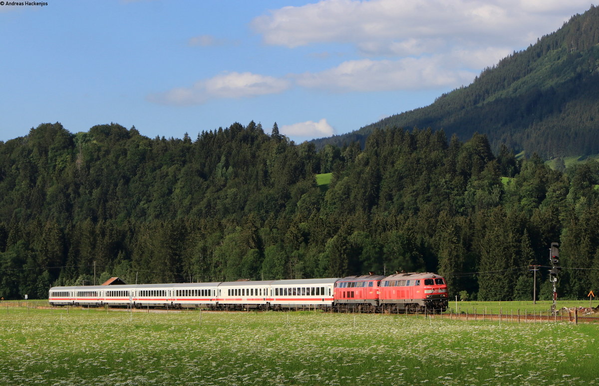 218 343-2 und 218 434-9 mit den Wagen des IC 119 "BODENSEE", Stuttgart - Innsbruck, am 03.08.2020 im Schussentobel bei Kilometer 162.8 Nähe Durlesbach Jürgen Vos