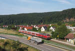 Mit sechs Minuten Verspätung hat der Pilgerzug "St. Anna", Ulm - Beuron, den Bahnhof Schelklingen verlassen und durchfährt soeben den Haltepunkt Schelklingen-Schmiechen. Schublok der nur noch dreiteiligen N-Wagen-Garnitur ist 218 436-4. Nicht nur der Laufweg, auch der Zug selber wird von Jahr zu Jahr kürzer. Aufnahmedatum: 26.07.2019; 09:47 Uhr