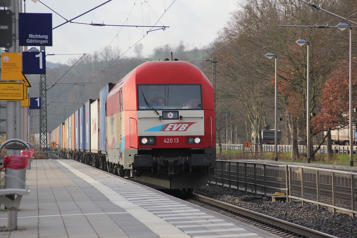 420 13 (223 033-3) EVB - Eisenbahnen und Verkehrsbetriebe Elbe-Weser GmbH mit einem Containerzug aus Richtung Salzwedel kommend in Stendal. Netten Gruß zurück! 03.05.2014 Stephan Kemnitz