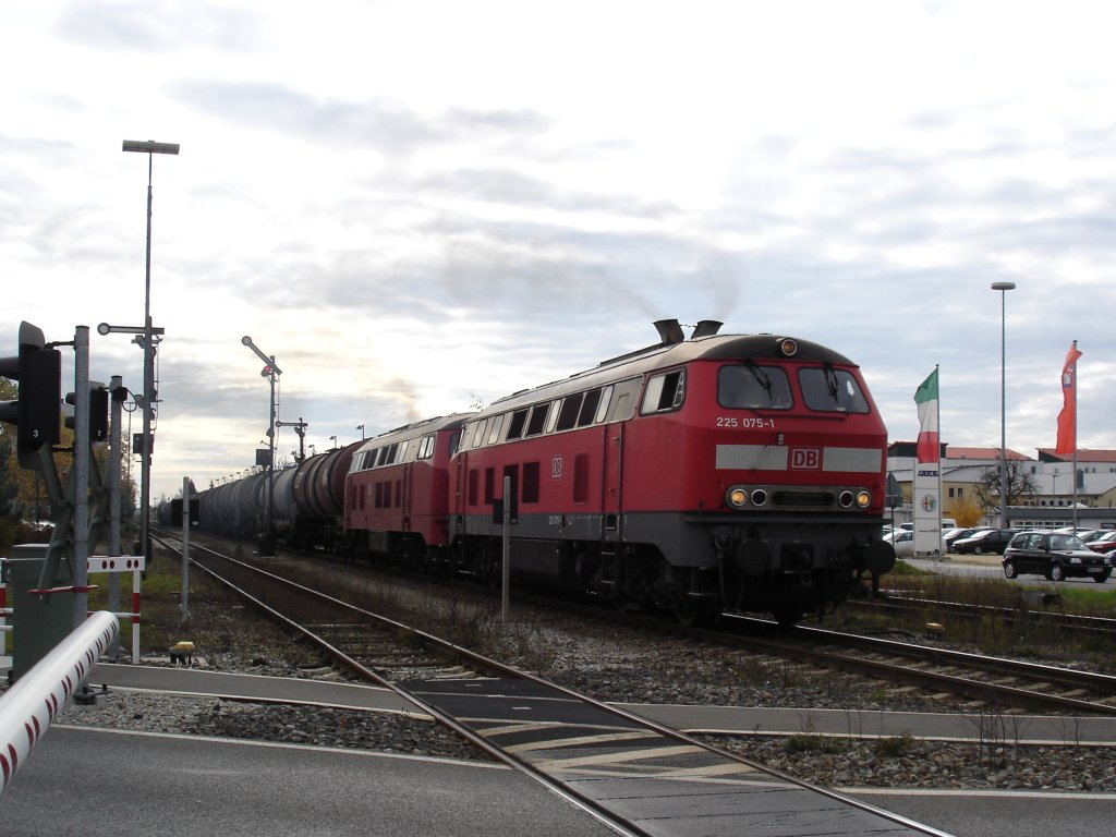 225 075-1 mit Kesselzug im Banhof Illertissen ausfahrt Richtung Ulm,am 26.10.2005