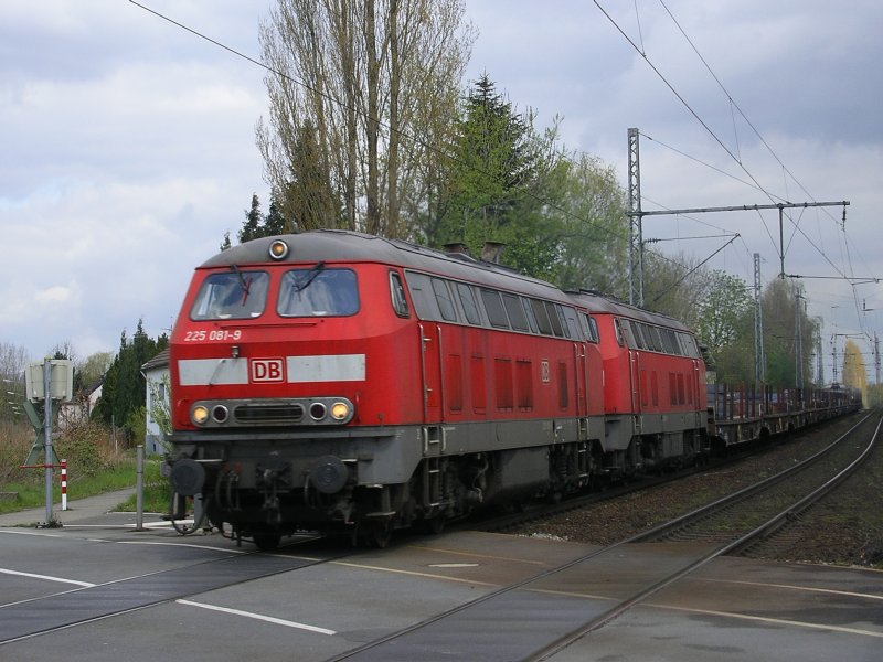 Diesel Doppelpower,225 081-9 und 225 084-3 ziehen einen leeren GZ mit Rungenwagen von Bochum Nord nach Wanne Eickel Güterbahnhof.(23.04.2008) Hubert Hager
