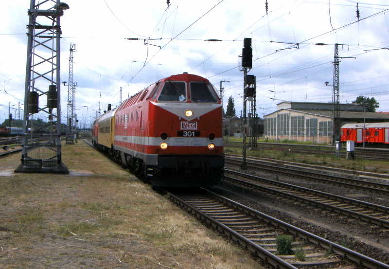 Am 13.06.2014 kam die 301 (229 120-1) und die 218 390-3 von der MEG aus der Richtung Hannover nach Stendal und fuhr weiter in Richtung Magdeburg. Andreas Meier