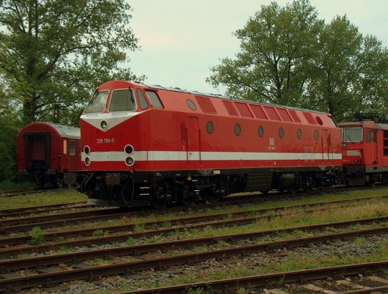 Der IR 2550 (Chemnitz-Düsseldorf) durchfuhr mit 229 199-5 an der Spitze den Bahnhof Stadtroda an der "Holzlandbahn" (KBS565). Hier im Mai 1999. Mike Schulz