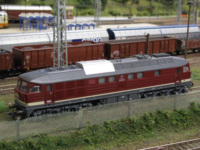 Diesellok BR 232 100-8 "DR" -Ludmilla- auf der Modellbahn-Anlage des MEC Rostock, 27.12.2009