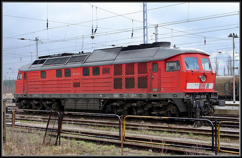 232 421-8 abgestellt im Bhf Neustrelitz. am 29.03.08