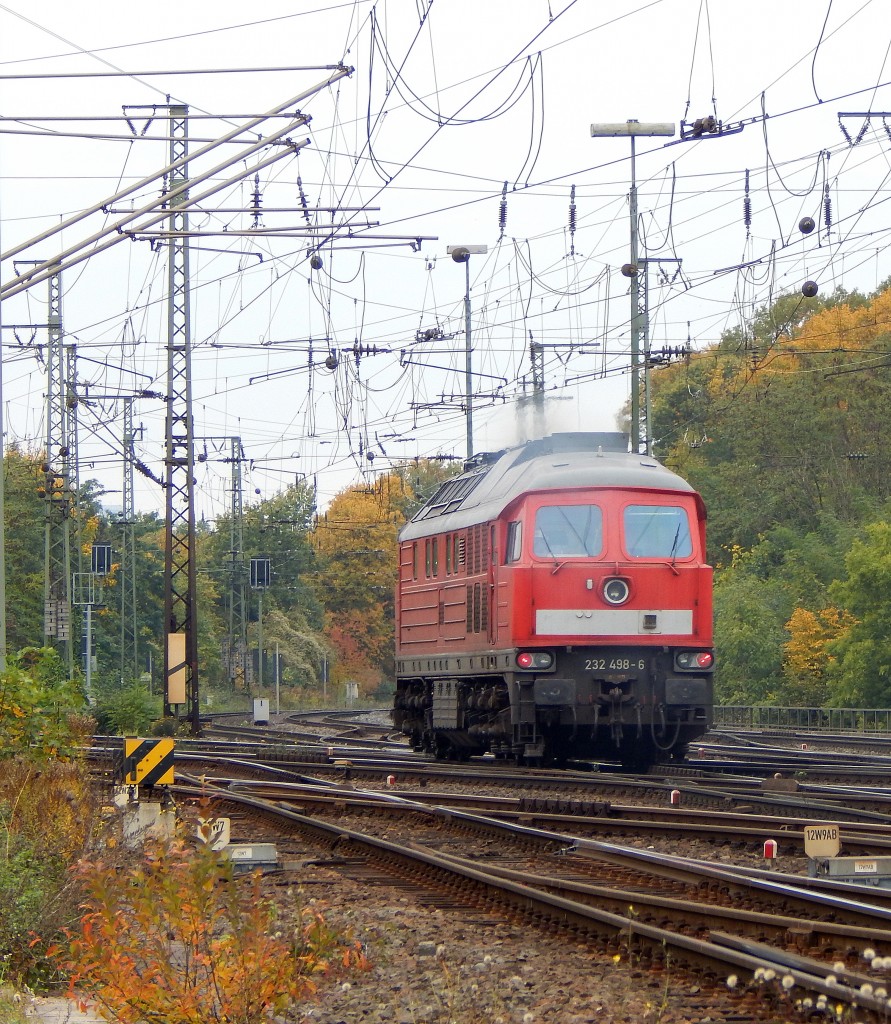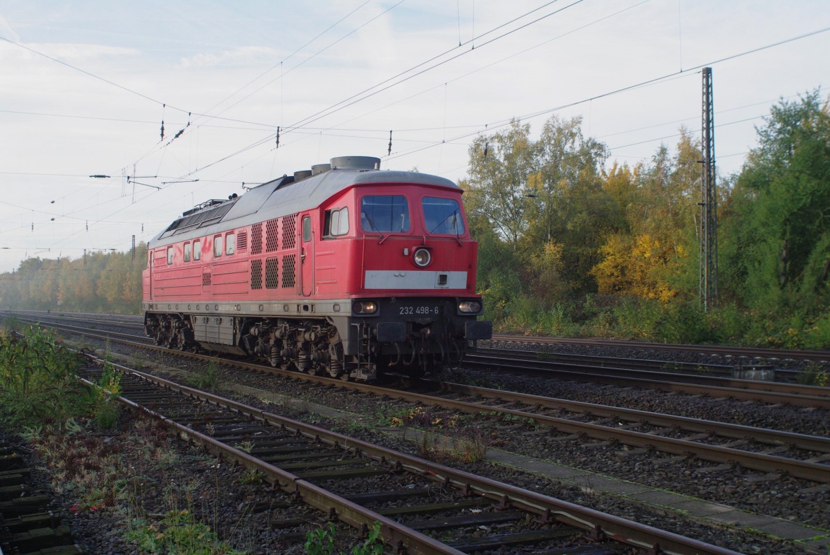DB 232 498-6 durchfährt am Herbstmorgen des 26.10.2015 solo Bochum-Riemke