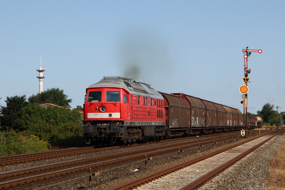 232 498-6 DB Schenker Rail Deutschland AG mit einem gemischtem Güterzug aus Brandenburg Altstadt bei Nennhausen und fuhr in Richtung Wustermark weiter. 29.06.2012