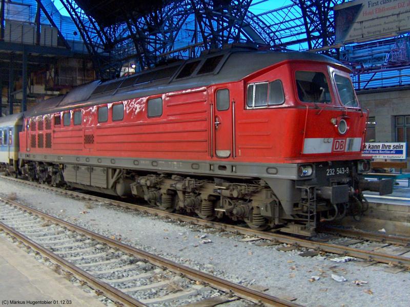 Kraftpacket 232 543-9 im Bahnhof von Dresden.. Foto vom Nov.2004