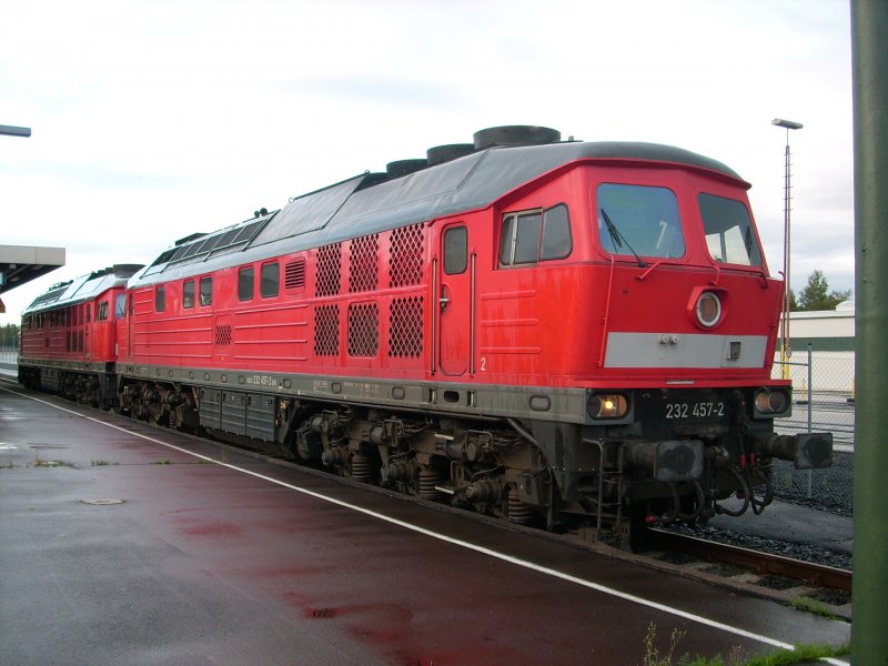 Doppeltraktion von 232 457-2 und 233 588-3 wartet im Hbf Wiesau/Opf 07.09.09