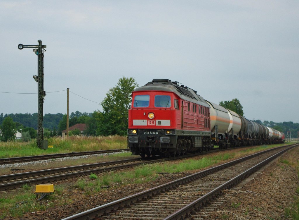 Eine für diese Strecke seltene 3-fach-Traktion, bespannt mit 225 811-9 + 1 Schwestermaschine + 233 596-6 durchfuhr mit einem Kesselzug am 13.03.10 Poing. Der Zug fuhr von Mühldorf/Inn nach München-Nord. Stephan Möckel