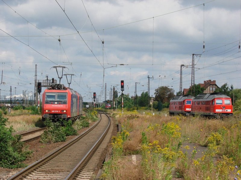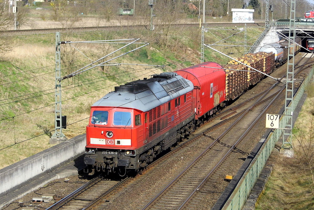 233 636-0 DB als Tfzf fährt in Halle-Kanena/Bruckdorf auf der Bahnstrecke Magdeburg–Leipzig (KBS 340) Richtung Halle (Saale).