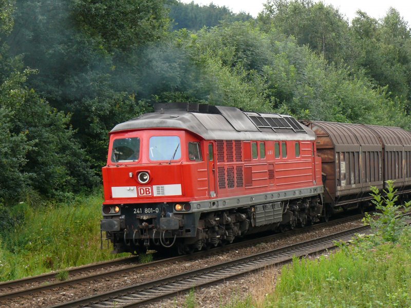 241 801-0 am 4.8.04 mit ihrem Güterzug nach Montzen kurz vor dem Gemmenicher Tunnel.Sie hat ihren Zug in Aachen West übernommen (der von weiter her kam) und gibt ihn in Montzen an SNCB-Tfz ab. Fdl Kall