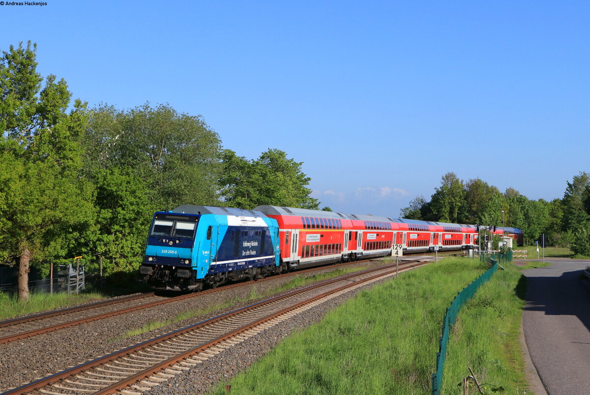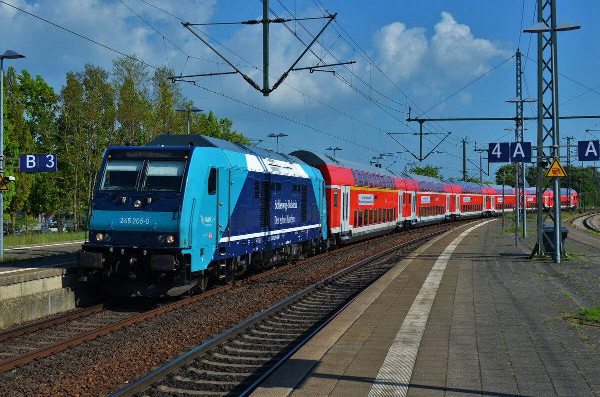 Am 30.05.21 war 245 205-0 mit einer Dosto-Garnitur als RE6 (RE 11024) von Hmburg-Altona nach Weserland (Sylt) unterwegs und erreichte dabei den Bahnhof Itzehoe. Kim Nicodemus