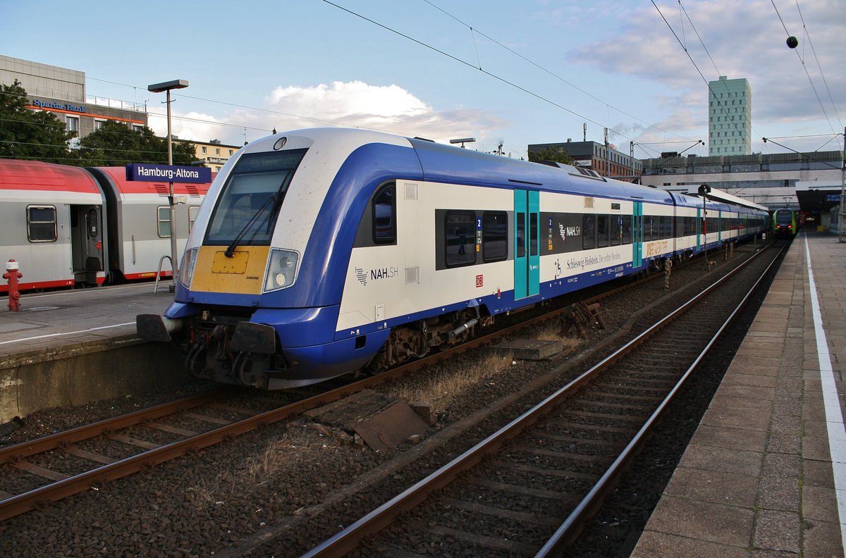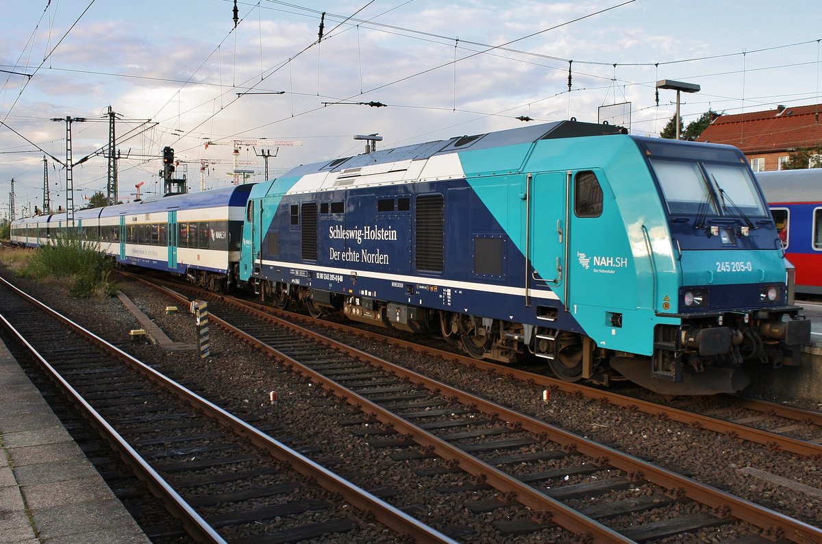 Flankiert von einem ICE 2 und dem ET 6.05 der Nordbahn verläßt die 245 205-0 der Nord-Ostsee-Bahn am Abend des 30.10.2016 Hamburg-Altona in Richtung Westerland Horst Lüdicke