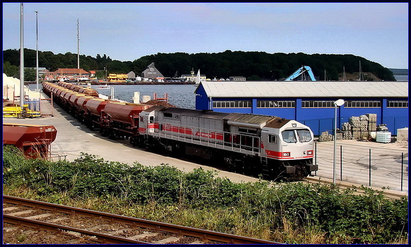 Ne Großkatze im Stralsunder Südhafen. 250 004-9 für -hvle- unterwegs, gibt sich die Ehre.   am 05.08.10