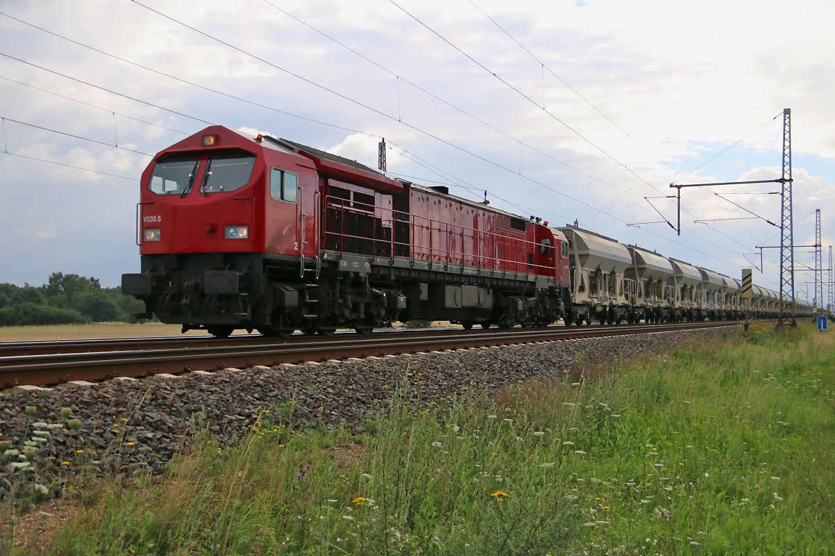 V 330.5 (250 008-0) hvle - Havelländische Eisenbahn AG mit einem Güterzug, bei der durchfahrt in Rathenow und fuhr weiter in Richtung Stendal. 28.07.2015 Stephan Kemnitz