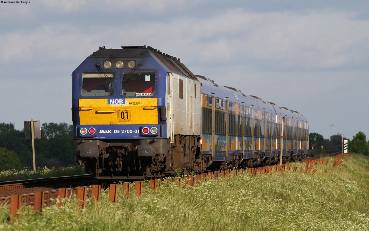 DE 2700-01 (251 001-4) der NOB - Nord-Ostsee-Bahn GmbH mit dem (NOB81712) von Hamburg-Altona nach Westerland(Sylt) in Elmshorn. 08.11.2011 Stephan Kemnitz