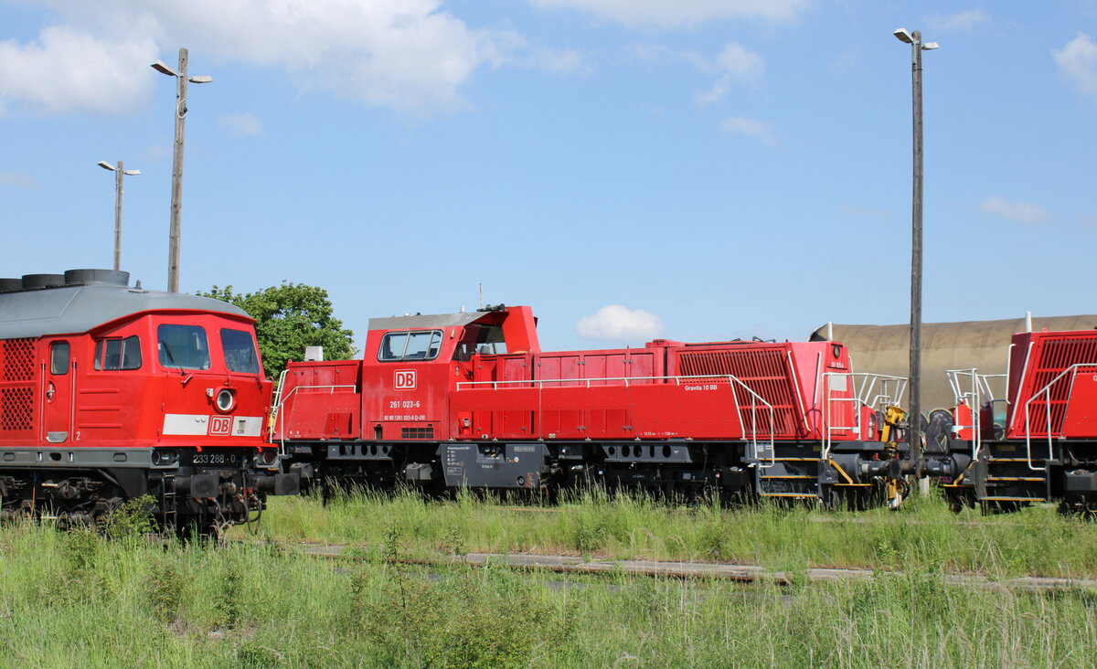 DB 261 023-6 am 14.05.2023 in Erfurt Gbf. Von freizugänglichen Wegen aus fotografiert.