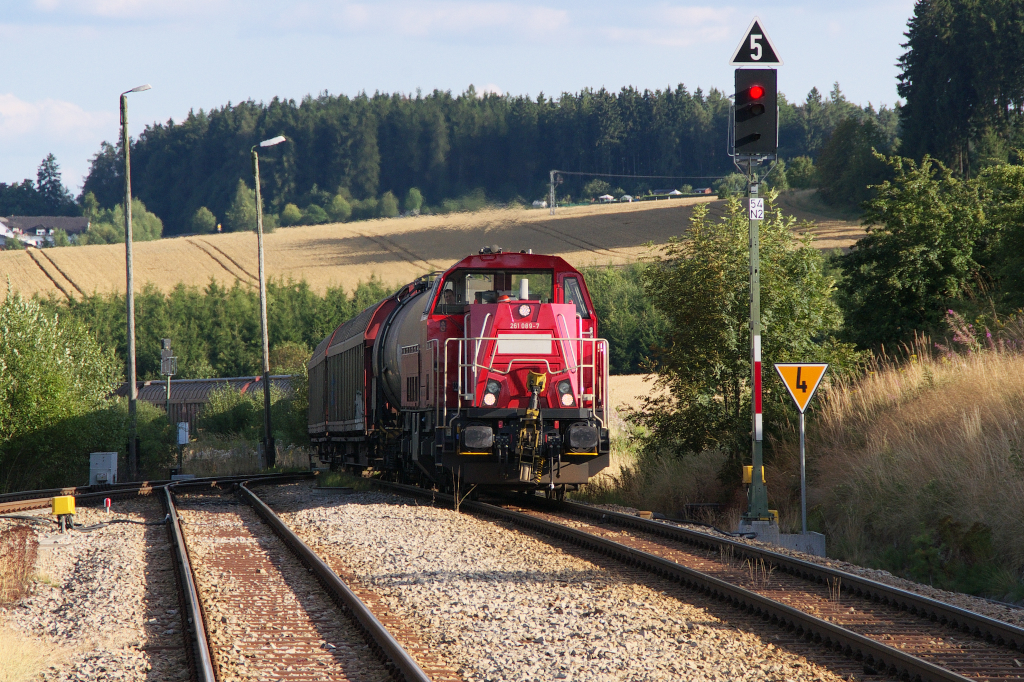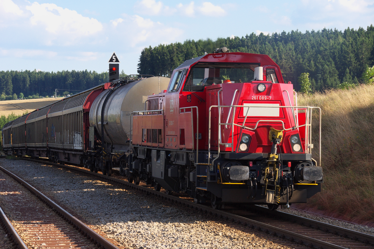 Bedient werden in Blankenstein die ZPR (Zellstoff- und Papierfabrick Rosenthal) und in Ebersdorf-Friesau die Firma Klausner Holz. Die Züge für die Oberlandbahn nach Ebersdorf-Friesau müssen in Lobenstein die Fahrtrichtung wechseln und Kopf machen weil es in Unterlenmitz keine Verbindungskurve aus Richtung Wurzbach zur Strecke nach Triptis gibt..Alle Güterzüge werden im Sandwich gefahren, damit man im Spitzkehrenbahnhof Wurzbach nicht den Zug umfahren muss. 261 089-7 und 261 048-3 wuchten einen Güterzug aus Blankenstein nach Saalfeld bei Unterlemnitz über die Höhen des Thüringer Schiefergebirges. 14.08.2013 Ivonne Pitzius