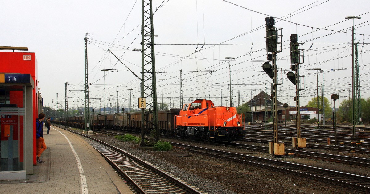261 300-8 von Northrail und der Rurtalbahn fährt mit einem Bleizug aus Antwerpen-Lillo(B) nach Stolberg-Hammer bei der Ausfahrt von Aachen-West und fährt in Richtung Aachen-Hbf. Aufgenommen vom Bahnsteig in Aachen-West bei Sonne und Wolken am Nachmittag vom 4.4.2014.