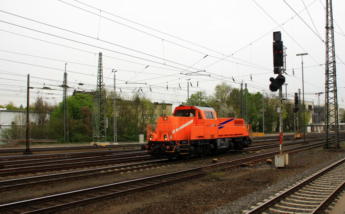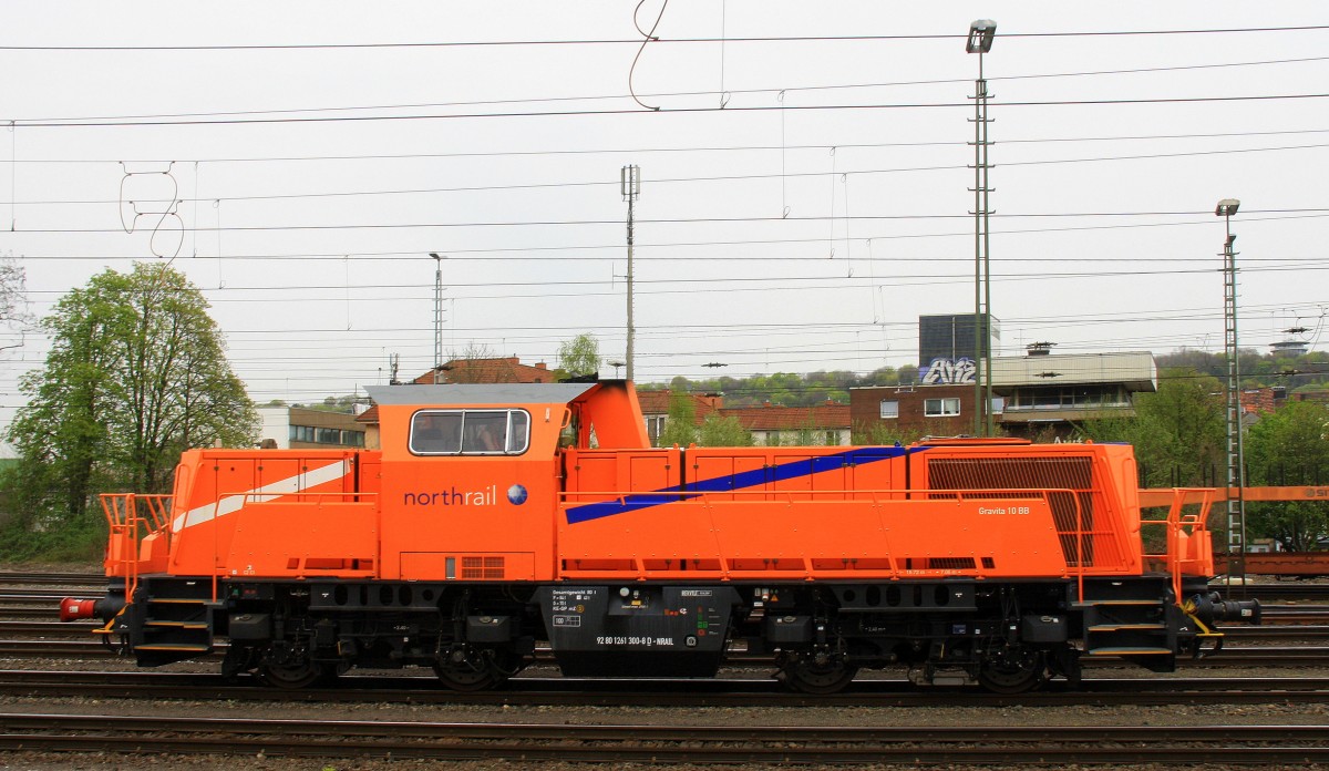 261 300-8 von Northrail und der Rurtalbahn kommt als Lokzug aus Stolberg(Rheinland) und fährt in Aachen-West ein. Aufgenommen vom Bahnsteig in Aachen-West bei Sonne und Wolken am Nachmittag vom 4.4.2014.