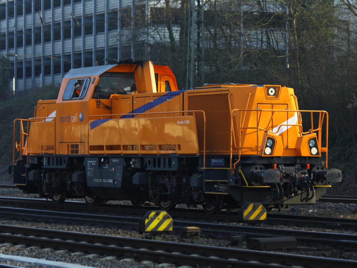 261 302-4 der northrail am Zugende der von 261 300-8 von Mengen bis Sigmaringen gezogenen Wagen der Gattung Talns. Da der Zug nach Haigerloch-Stetten auf Grund einer baubedingten Streckensperrung zwischen Sigmaringendorf und Hanfertal nicht planmäßig, ohne Fahrtrichtungswechsel, durch das Laucherttal fahren konnte, musste über Sigmaringen gefahren werden, was einen Fahrtrichtungswechsel erforderte. Sigmaringen, 11.08.2022 Jürgen Vos