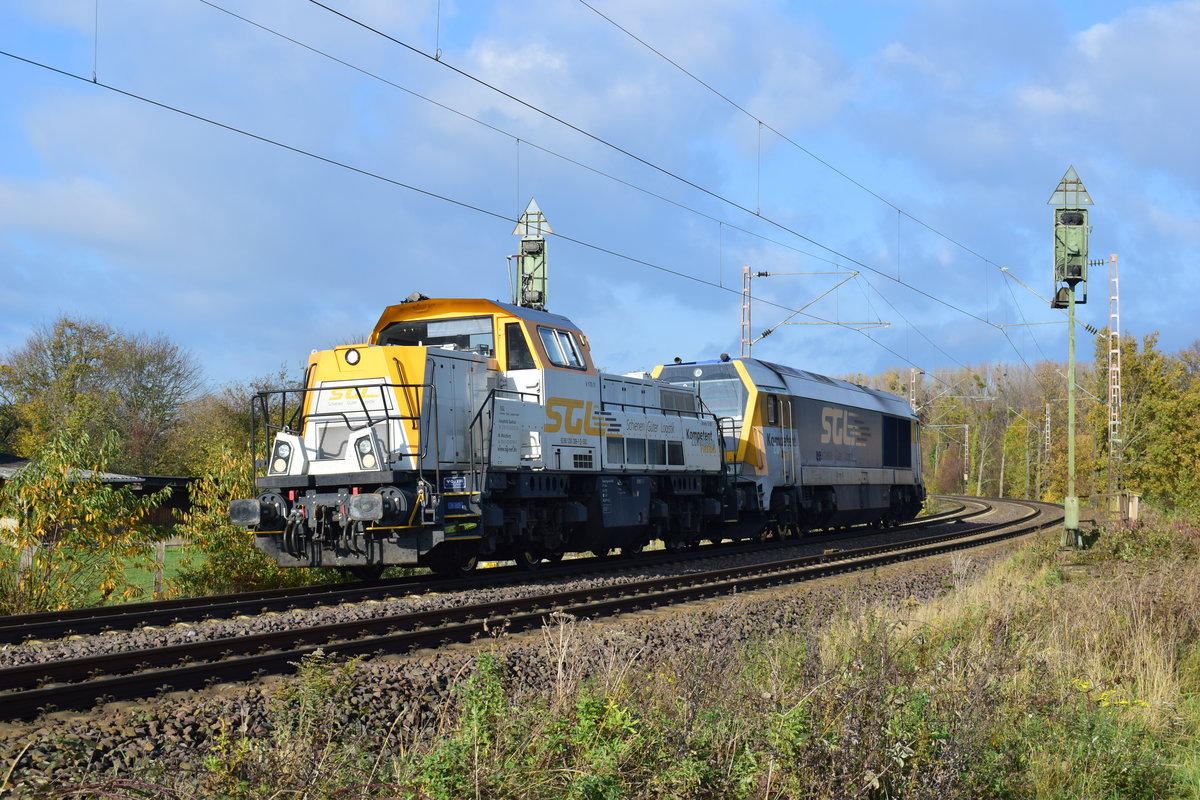 Bauzug in Roth abgestellt 20.11.2016. Gravita 10 BB SGL GmbH 261 308-1