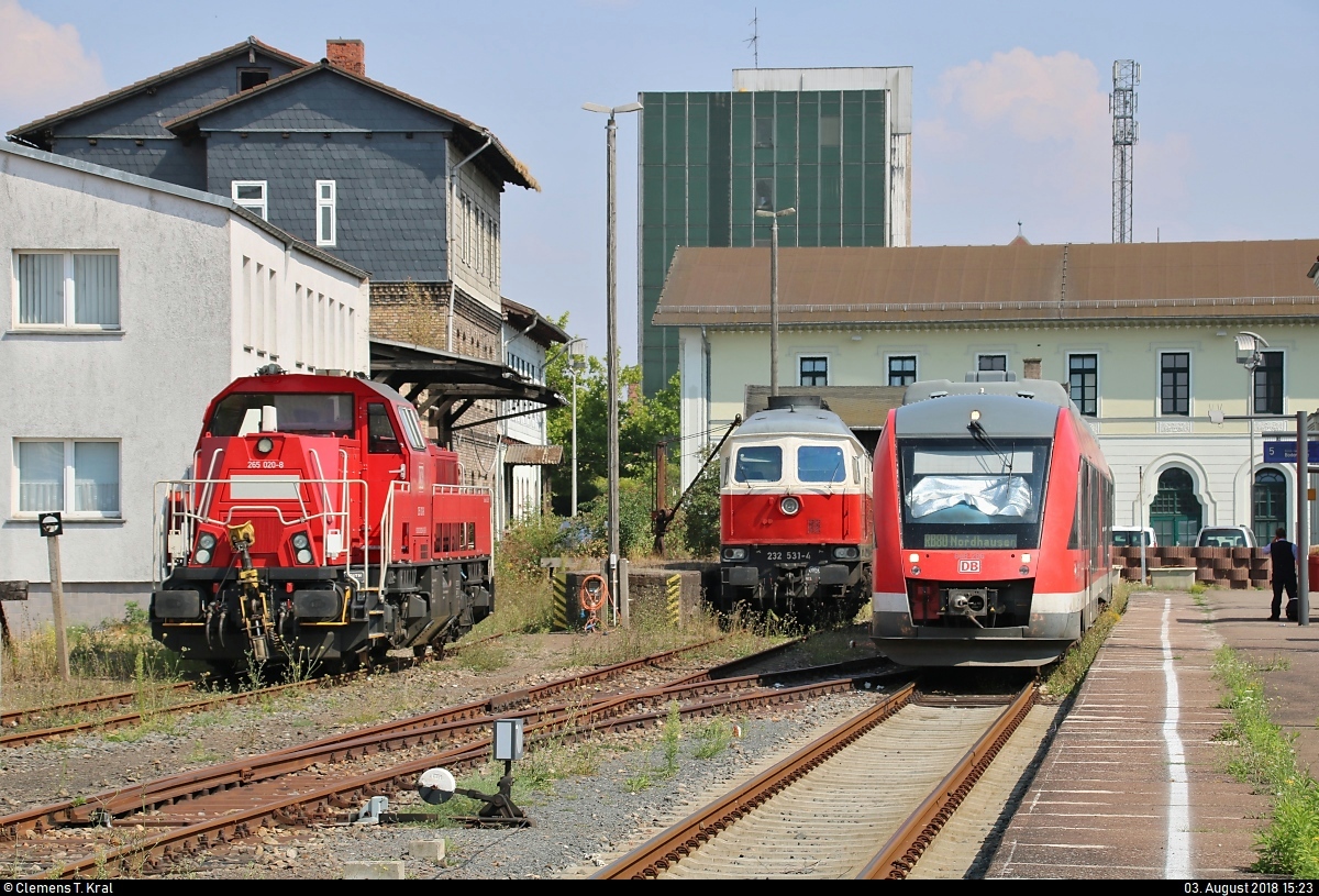 265 020-8 (Voith Gravita) DB, 232 531-4 DB und 648 766 (Alstom Coradia LINT 41) von DB Regio Nord als RB 14170 (RB81) von Nordhausen nach Bodenfelde haben sich versammelt.
