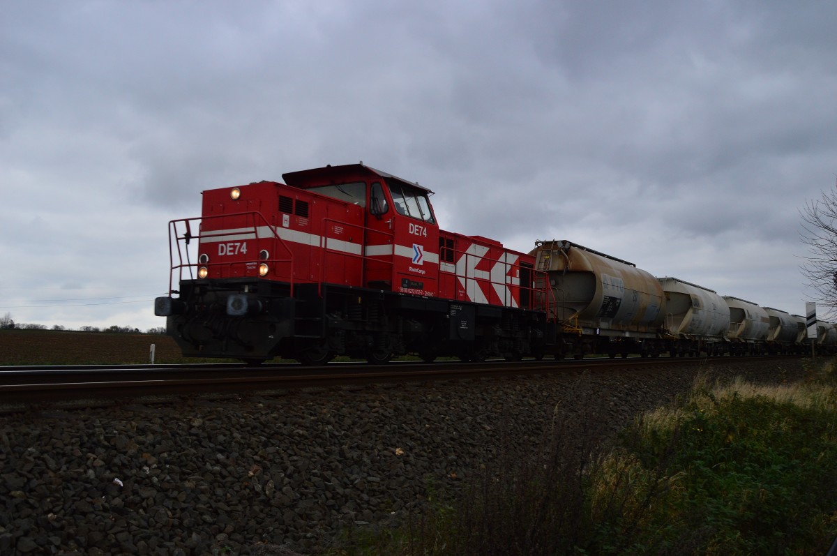 HGK-Lok DE 74 (98 80 0 272 012-2 D-RHC) in Nievenheim in der Übergabe der ehemaligen Industriebahn Zons-Nievenheim, 15.1.14.