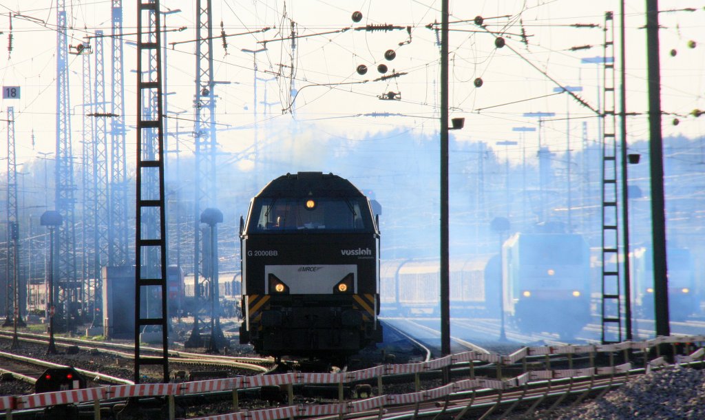 272 407-8 von MRCE fährt mit viel Qualm in Aachen-West ab. Sie zieht einen Kurzen Stahlzug in Richtung Aachehn-Hbf,Köln bei Gegenlicht am 24.4.2013. Stefan Hochstetter
