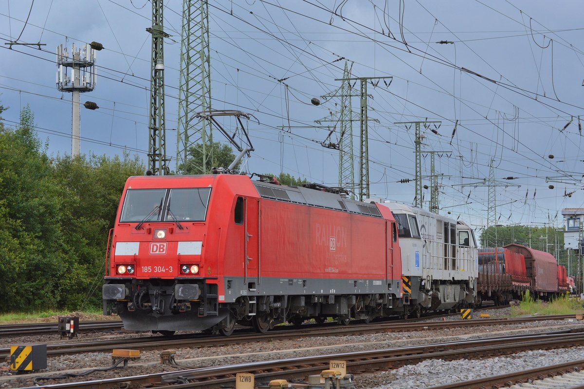 185 304-3 kam am 29.7 mit 272 602-4 imm Schlepp und einem Mischer durch Gremberg gefahren. Gremberg 29.07.2016